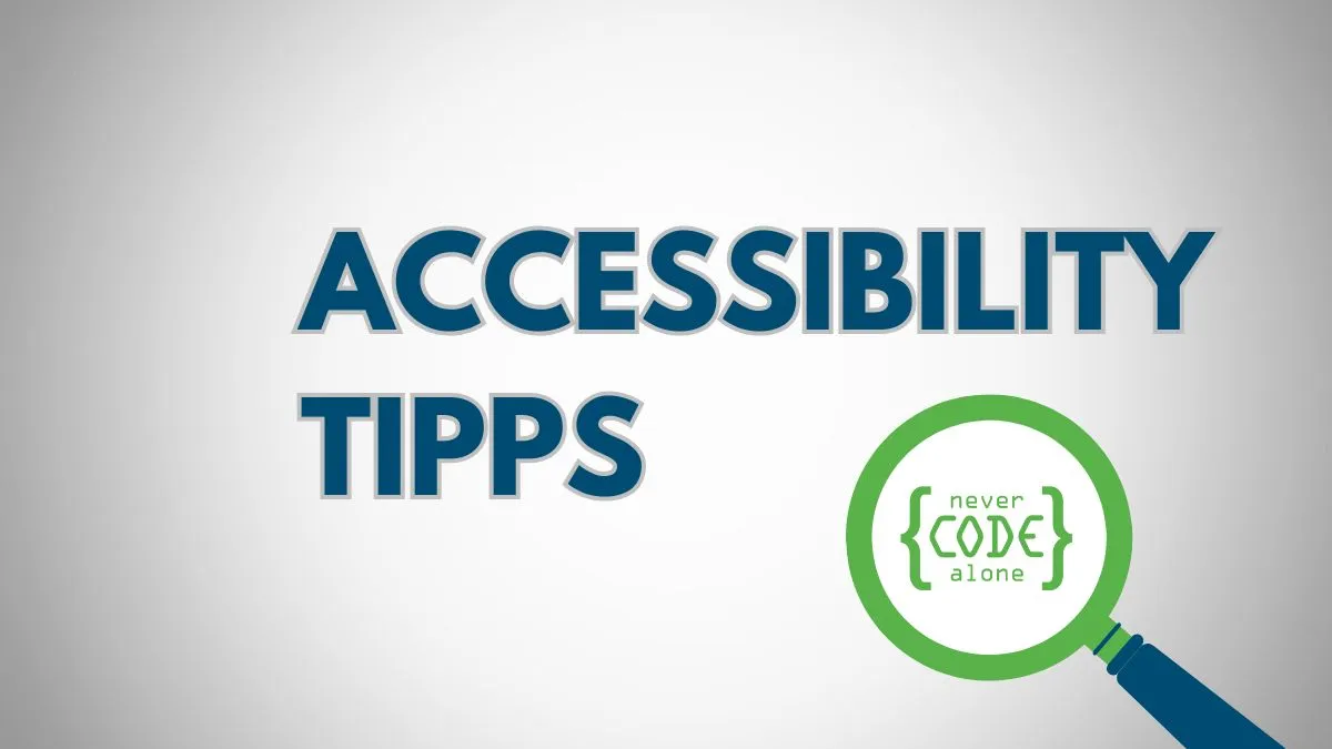 Headline Accessibility Tipps mit Never Code Alone Logo und Lupe