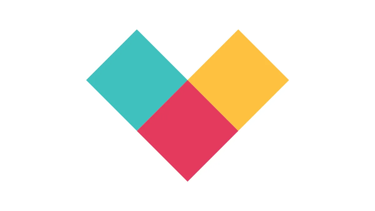 3 Quadrate in V Formation. von links nach rechts blau, rot, gelb