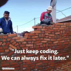 Zwei Maurer chaotische Arbeit - Just keep coding. When can always fix it later - Headline