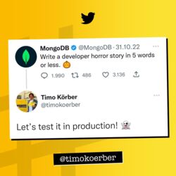 X Tweet Horror Story -Write a developer horror story in 5 words or less - lets test in production!