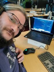Roland Golla Selfi Laptop IDE mit Darkmode mit Headset PHPUnit Testcode