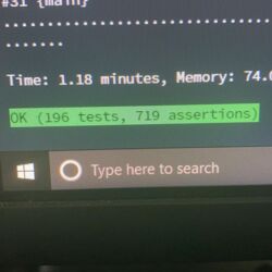 Schreibtisch Ansicht gespiegelter Laptop auf Monitor PHPUnit Linux Terminal